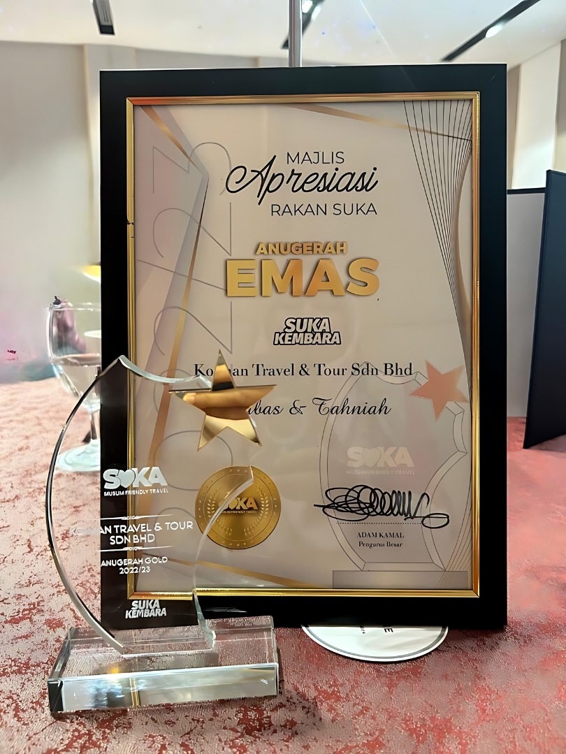 Tahniah diucapkan buat Koiman Travel & Tour Sdn Bhd kerana mendapat Anugerah Emas. Jutaan terima kasih juga diucapkan buat anda yang sentiasa memberikan sokongan terhadap servis & perkhidmatan kami.
