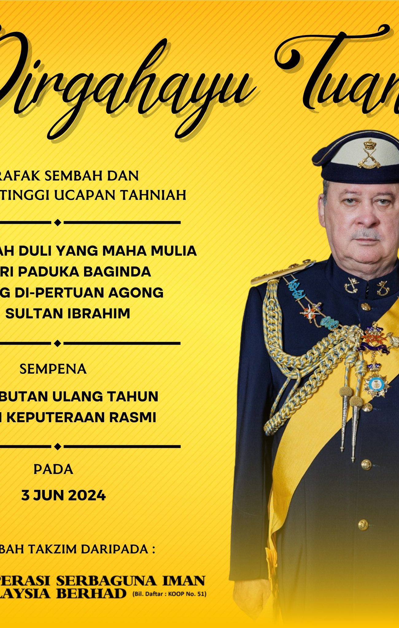 Kami dari Koperasi Serbaguna Iman Malaysia Berhad (KOIMAN)Ā ingin mengambil kesempatan ini untuk mengucapkan Selamat Menyambut Hari Keputeraan Yang Di-Pertuan Agong buat anda semua.