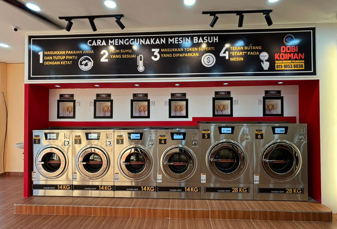 Dobi layan diri mempunyai peralatan yang boleh menampung jumlah cucian yang jauh lebih besar daripada mesin di rumah. Di Kedai Dobi Koiman kami menggunakan mesin pencuci dan mesin pengering yang berteknologi tinggi untuk memberikan hasil cucian dan pengeringan yang terbaik untuk pelanggan.